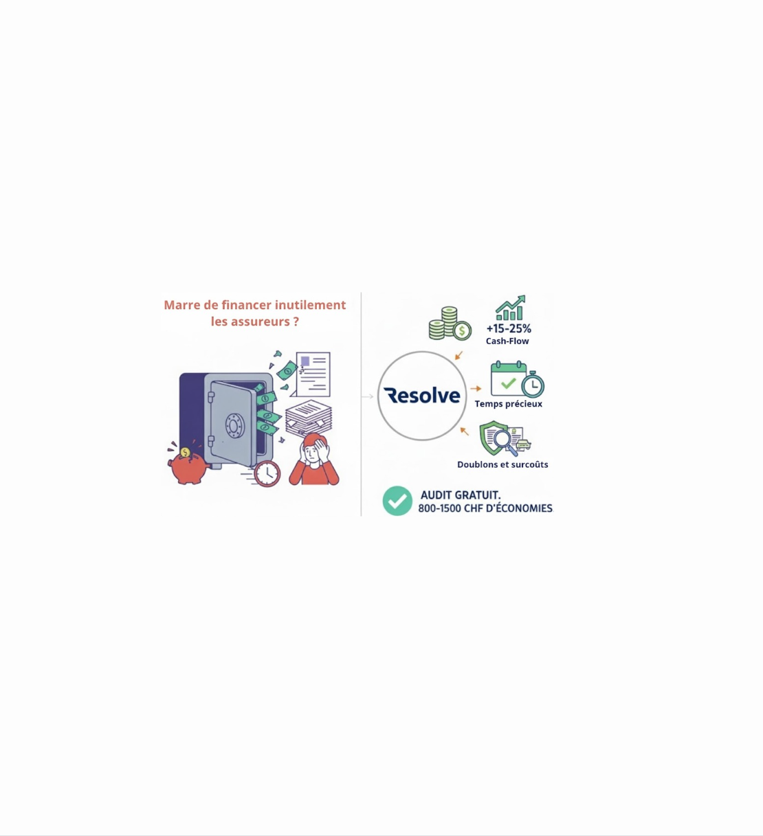 Au-delà des garanties, c'est votre tranquillité financière que nous pilotons. En Suisse, la fidélité à un assureur se paie souvent au prix fort. En mandatant Resolve, vous ne changez pas seulement d'assurance : vous changez de position de force.